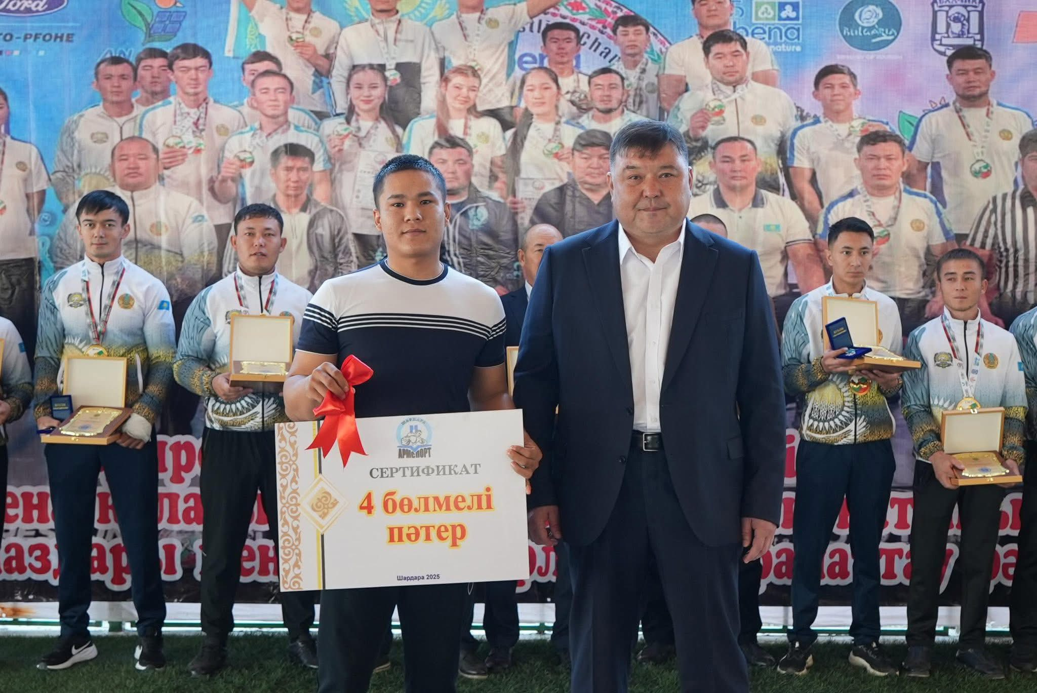 Шардара ауданында бүгін ерекше спорттық әрі қоғамдық мәні зор оқиға өтті. Армрестлингтен Әлем кубогының иегері, бірнеше мәрте Азия және Қазақстан чемпионы, халықаралық ареналарда ел намысын абыроймен қорғап жүрген “Шардара Армспорт” клубының танымал спортшысы Самат Мұқасанға жаңа пәтердің кілті табысталды. Бұл – ел спортының дамуына қосқан үлесі мен жеке жетістіктерінің лайықты марапаты ретінде берілген маңызды сый.