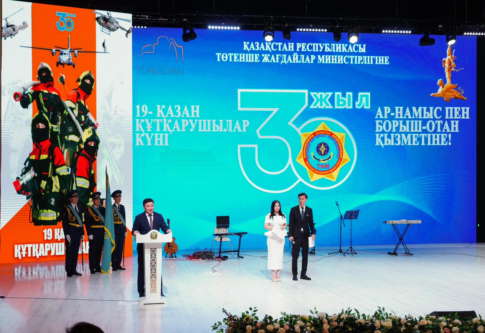 Қазақстан Республикасы Төтенше жағдайлар министрлігінің 30 жылдығына орай Түркістан қаласында Құтқарушылар күніне арналған салтанатты жиын өтті.